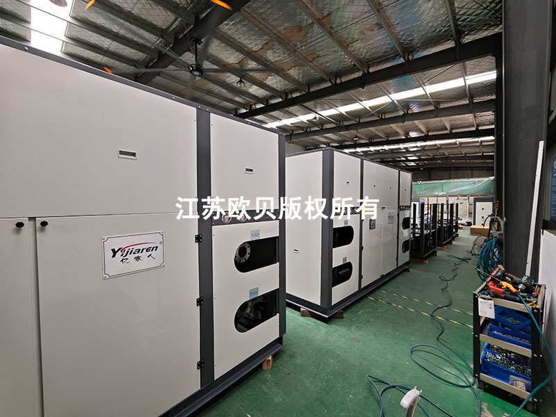 除濕環節更顯著:高溫熱泵轉輪除濕系統利用冷凝廢熱再生,再生能耗降低70%以上(案例:某鋰電池車間除濕能耗從1.8kW·h/kg降至0.5kW·h/kg)。
